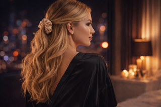 Na běžné denní nošení je ideální jemná hedvábná gumička, která vlasy netahá a po povrchu krásně klouže. Můžete ji použít do culíku i do drdolu – účes drží, aniž by vlasy zbytečně svírala.